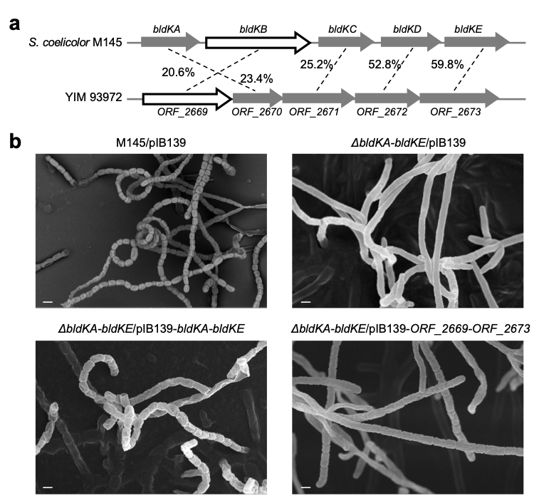 图2 YIM93972寡肽转运通道基因(a)及其在天蓝色链霉菌M145突变株中的回补效果(b)
