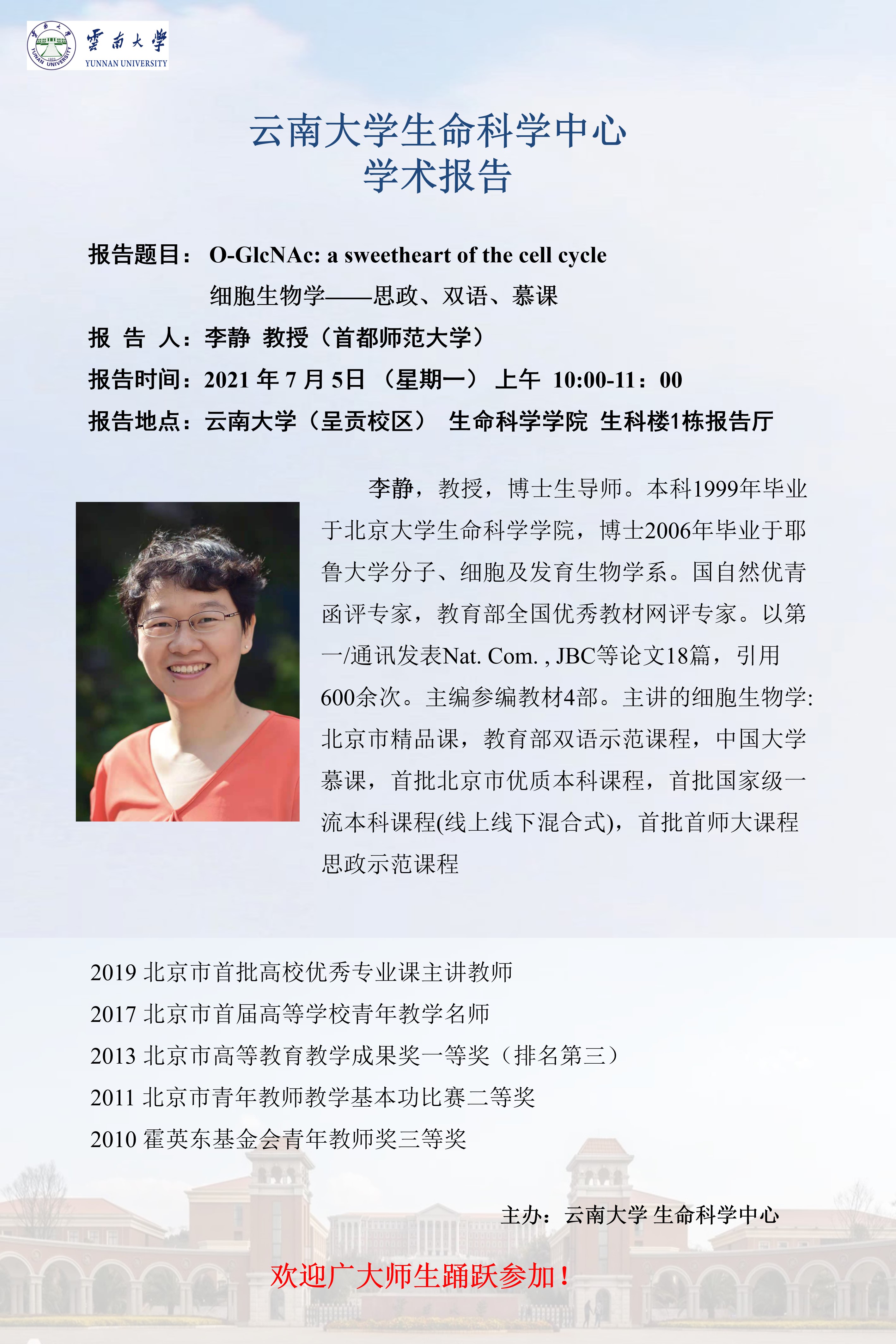 当前位置: 首页>>讲座信息>>学术讲座>>正文 O-GlcNAc: a sweetheart of the cell cycle 细胞生物学——思政、双语、慕课 发布时间: 2021年06月29日 15:46 阅读次数: