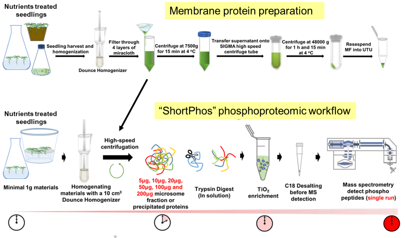 1. 利用定量蛋白组学 (特别是磷酸化蛋白组学和蛋白互作) 以及系统生物学结合分子生物学和生理学的方法研究植物膜蛋白,特别是受体激酶和转运蛋白在蔗糖,氮和磷信号通路中的功能。